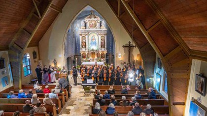 Ausstellungseröffnung mit Musik vom Tegernseer Chor "Sunshine Gospels". Pfarrer Stefan Fischbcher spendet uns den Segen. Die Koplingsfamilie Waakirchen-Schaftlach lädt zu Umtrunk und Häppchen.